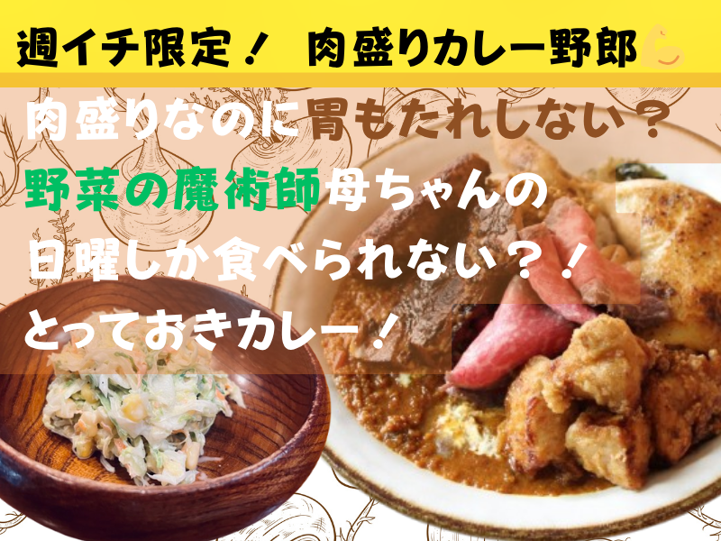 日曜限定「肉盛りカレー野郎」、今日だけ登場です!