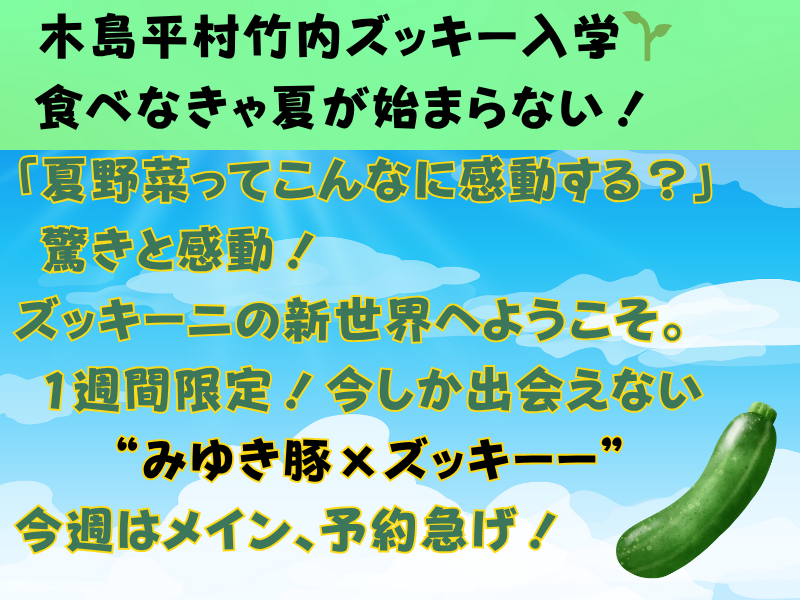 今月は竹ズッキーとその日野菜と食材の驚きと感動!