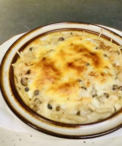 しめじホワイトソースをとろりとかけて、チーズで香ばしくグラタン焼き。