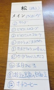 メインディシュのそれぞれが松・竹・梅の3種類に分かれます。