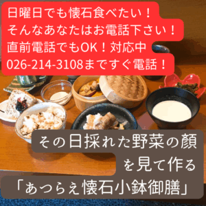 日曜でも懐石小鉢御膳あり(事前or当日電話OK)
