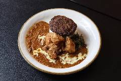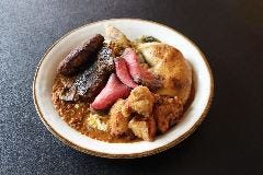 ローストビーフ(牛)サクサクとんかつ(豚)72時間チキンコンフィー(鶏)の三大肉を一挙に愉しめるカレーです。
