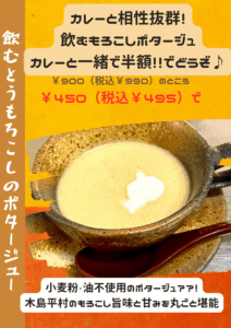 • 肉盛りカレー野郎 + 旬のとうもろこしポタージュ半額490円